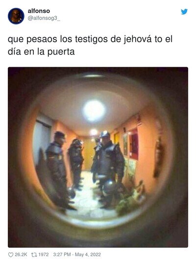 Oh si, maravilloso, esos malditos testigos deberían aprender a respetar. No nosotros por tratar de hacer que cambien su religión, sino ellos. Y no, #14 #14 thegreenpanther dijo: ¿Soy el único que piensa que el primero es un fanfarrón y un fantasma de mucho cuidado?, yo pienso lo mismo.