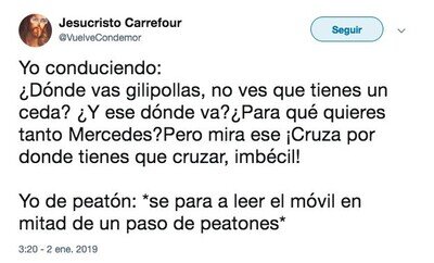 a lo mejor, habrá un día donde será él quien conduzca y tu estés en el paso de peatones... ahí lo dejo.