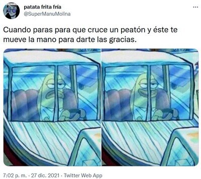 #1 #1 Todo_esto_antes_molaba dijo: ¿Y la gracia está en.....?Que se cree que puede ir atropellando a gente por ahí, y encima en paso de cebras, pedazo indemnización tendría que pagar por palurdazo, una mala mirada... ¿Qué daño hace eso? si se estuviera cagando en tu madre... o le hubiera destrozado el coche.. pues aún.. ¿pero una mala mirada?