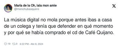 #6 #6 jarekelbutanero dijo: Si lo que hace ese fuera música,sabrías diferenciar entre un disco rayado y uno bueno,pero como no es música...Pues ale machote, haznos un CD de no-música a ver cuanto éxito tienes.