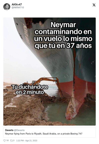 Me siento muy estúpido ahorrando agua cuando luego veo a Neymar viajando en avión privado para comprar el panpor @AKN4710