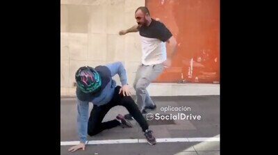 Mira si está caro el tabaco, que este hombre se pelea en plena calle y no suelta el piti ni a tiros