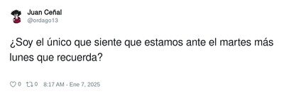 No sé si os lo creereis, pero yo noto mas el finde sabático los martes, que los lunes xD !
