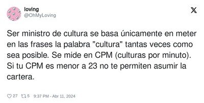 Dicho está, que no se que coño hace esa tía de ministra de cultura cuando hasta ramoncín (¡fijaté lo qué estoy diciendo, ramoncín!) tiene más cultura que ella
