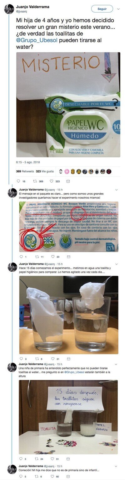¿Son las toallitas para el WC deshechables? Este experimento demuestra que NO, por @jjvaar
