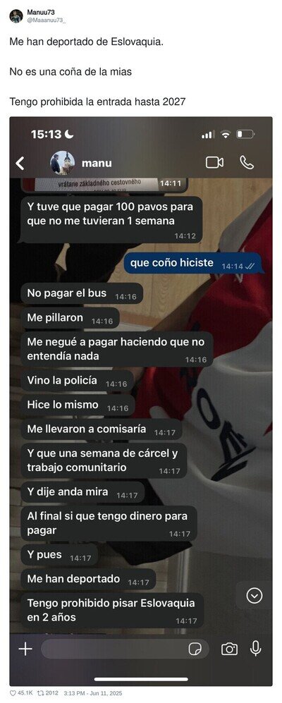 Explica cómo lo han deportado de Eslovaquia por hacer el cafre en el bus
