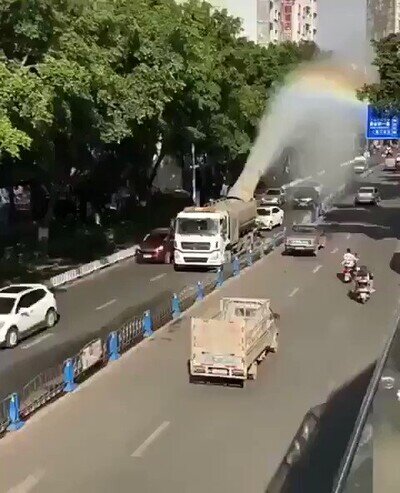 no viaja en un arcoiris, viaja en un puente que se llama puente del arcoiris .-. ni puñetera gracia, vamos
