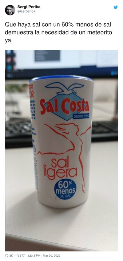 Y no podía escribir SAL porque cada vez que lo leyera saldría de la cocina y moriría de hambre.