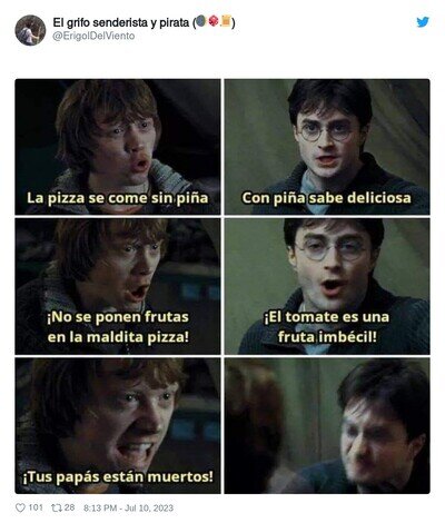 La pizza con piña derrama sangre, por @ErigolDelViento