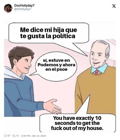 Vamos a reirnos de lo que nos roban los políticos porque tenemos envidia. Si tenemos la posibilidad de estafar a alguien lo vamos a hacer, aun sabiendo que esa persona igual está peor que nosotros económicamente, pero si los políticos hacen lo mismo, les criticamos y les volvemos a votar, porque somos tontos y españoles.