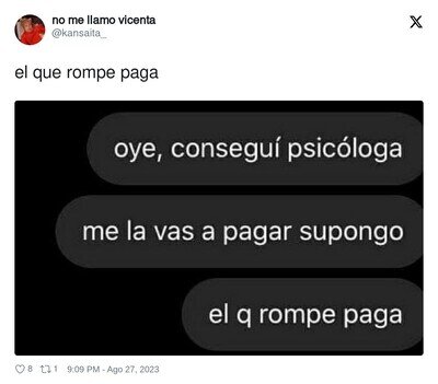 De verdad, esta conversación la he tenido muchas veces con mi entorno, y hay gente que reacciona así en plan "uy, ha dicho que tuvo que ir a psicólogo, eso no se dice en público...". pues si, y me sirvió, y me alegro de haber ido y lo recomiendo a quien lo necesite. Igual que he ido a mi médico de cabecera a por antibióticos cuando la fiebre me tiene postrada en la cama. Soy muy partidaria de normalizar el tema psicológico.