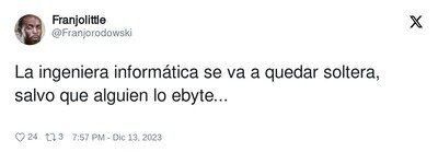 #31 #31 palcarajo dijo: Los entiendo todos. Qué mal han hecho las ingenierías.Dirás qué bien hacen.