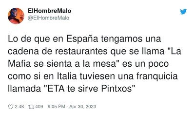 A ver, en la ETA nunca fueron de pintxos pero sí de kalimotxos en vasos de sidra. Un poco de rigor, por @ElHombreMalo