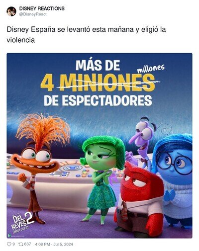 Del revés ganando por goleada a Minions y riéndose en su cara, por @DisneyReact