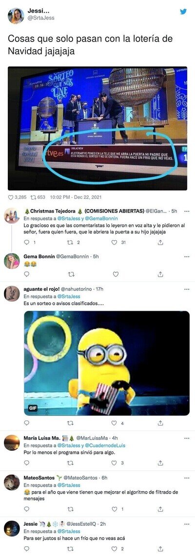 El mejor mensaje en directo que apareció en la retransmisión de la Lotería en TVE