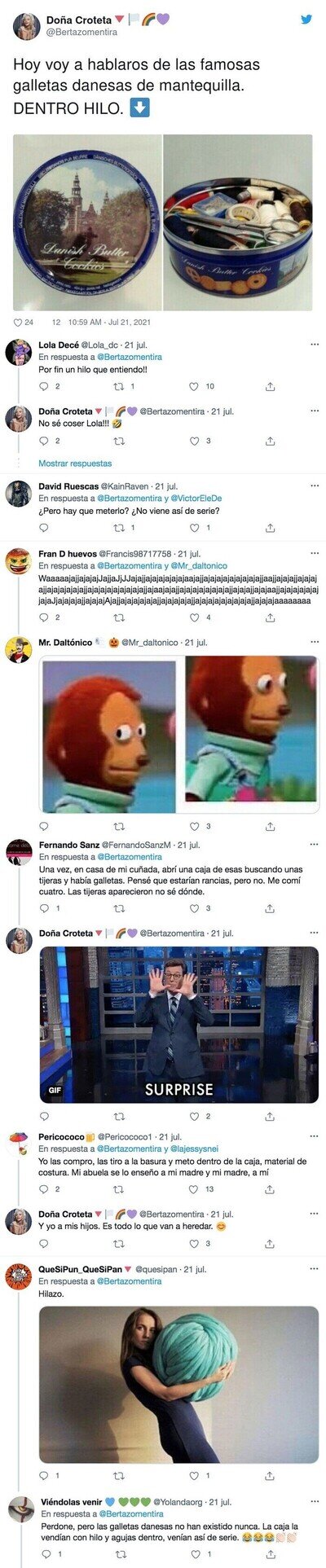 Esto es pura fantasía: el tweet que explica las cajas de galletas danesas de mantequilla , por @Bertazomentira