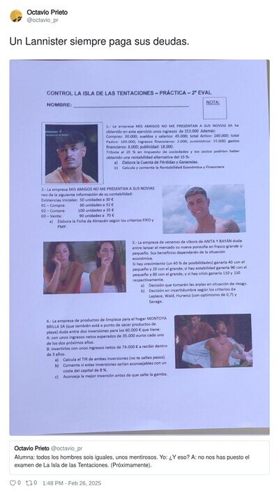 Increíble pero cierto: La Isla de las Tentaciones ya aparece hasta en los exámenes