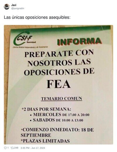 Oposiciones para FEA, éstas las apruebo sin estudiar, por @javigradin
