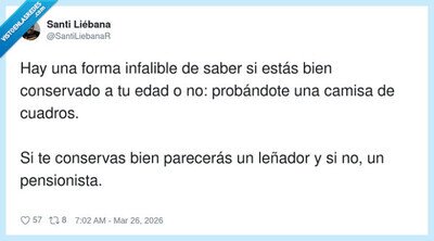 Me probé una camisa de cuadros y el espejo me pidió la tarjeta del IMSERSO, por @SantiLiebanaR