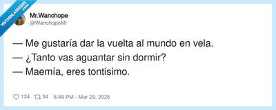 Tiene que ser jodido dar la vuelta al mundo en vela por las noches, por @WanchopeMr