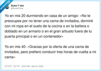 Con 20 me valía cualquier rincón; con 40 necesito mi cama y mi cargador (y silencio)