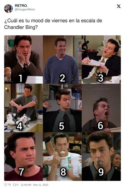 ¿Cuál es tu mood de viernes en la escala de Chandler Bing?