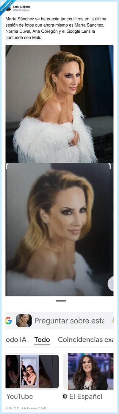 ¿Marta Sánchez o Malú? Hasta Google Lens se confunde con sus filtros, por @SantiLiebanaR
