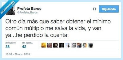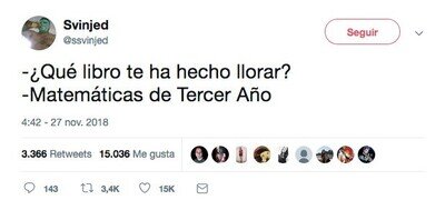 #3 #3 RobbStarkDecapitadoJoffreyEnvenenado dijo: si vieses lo que pasa en los congresos de matemáticas...triste, nadie comenta o retwitea su tweet y cree que aqui si le gustara a la gente