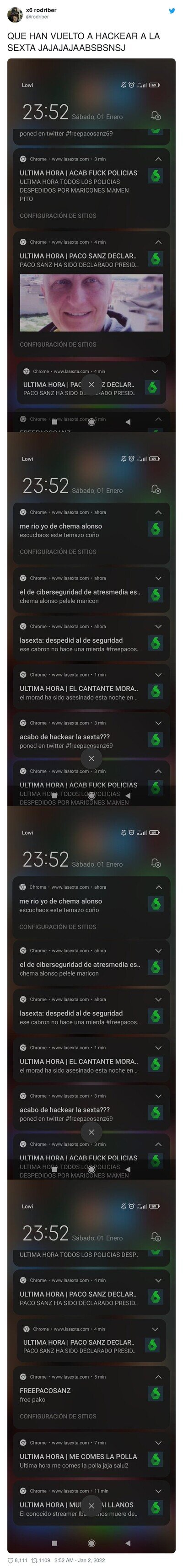 Hackean la web de la sexta y empiezan a enviar notiicaciones bastante locas, por @rodriber