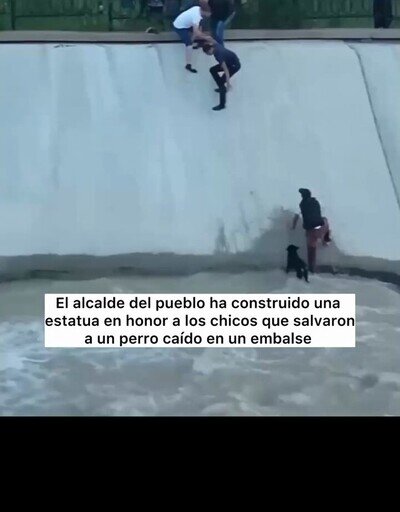 Alcalde erige una estatua en honor a unos chavales que hicieron una cadena para salvar a un perro de un emblase
