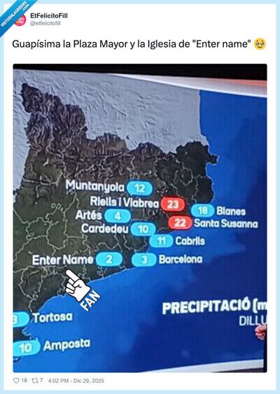 Maquíssima la plaça major i l’església d’Enter name ?#PoblesInvent ?, por @etfelicitofill