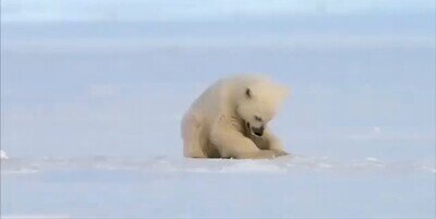 Una foca asusta accidentalmente a un cachorro de oso polar mientras hacía bolas de nieve, por @ceciarmy