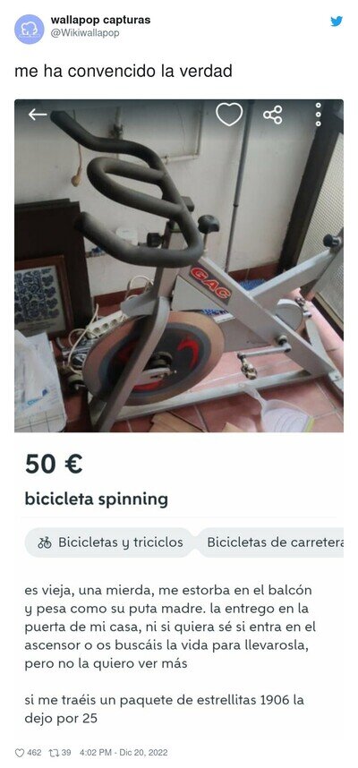 Si lees este anuncio de una bici estática de Wallapop, vas a picar como yo haría, por @Wikiwallapop