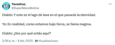 Ahora que ya tenemos internet el en el Averno, qué será lo próximo; hablar con Dios mediante su cuenta de gmail? O via twitter, que tiene cuenta: @Dios_Padre