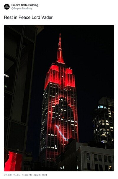 El homenaje del Empire State por la muerte del actor de Darth Vader, James Earl Jones