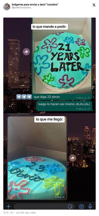 Cuando pidas una tarta, déjalo bien claro para que no te pase como a éste