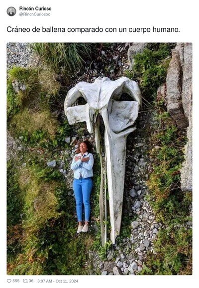 Cráneo de ballena comparado con un cuerpo humano, por @RincnCuriosoo