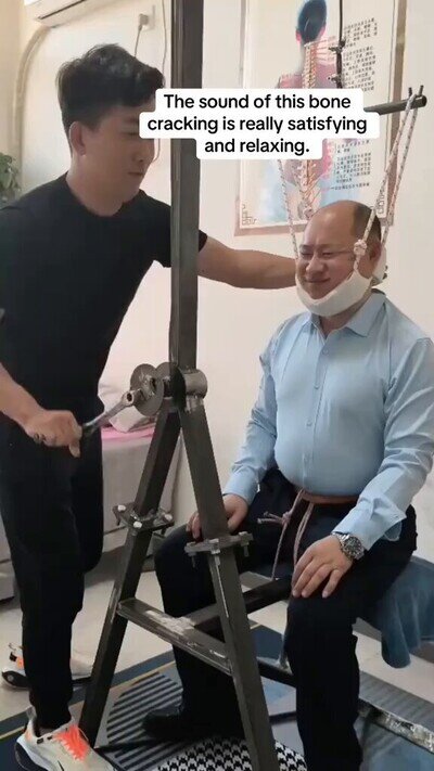 Coreano fabricó una polea que te estira toda la columna y si no le haces una seña, te saca la cabeza