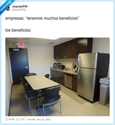 Beneficios: una nevera, una mesa… y el privilegio de comer mirando la puerta de salida, por @LeyvaCFM_