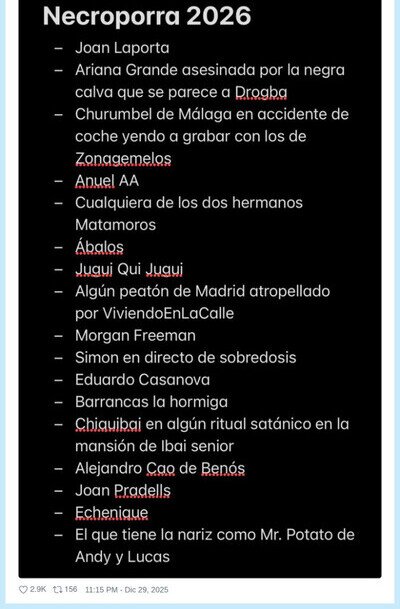 Yo intentando empezar 2026 con energía y Twitter ya me ha sacado la quiniela de los funerales, por @Tagelca